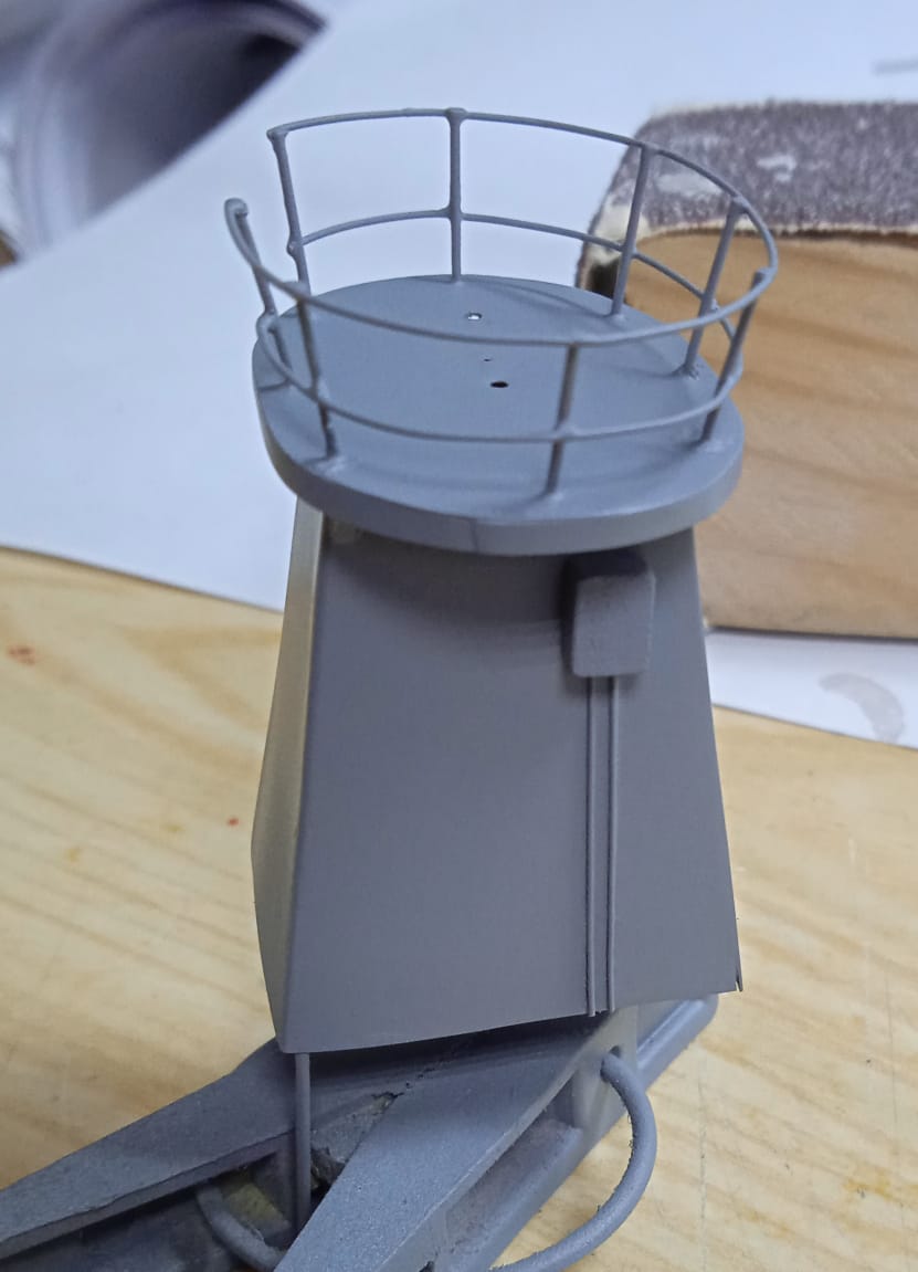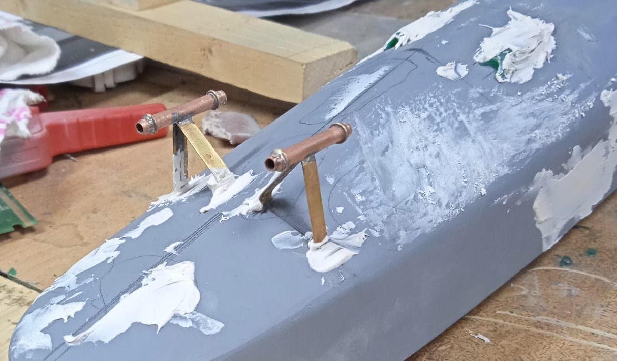 При совместной покраске+грунтовка  надстройки и леерного огражденя  есть риск  того , что последний получит двойную-тройную толщину и потеряет масштабность.