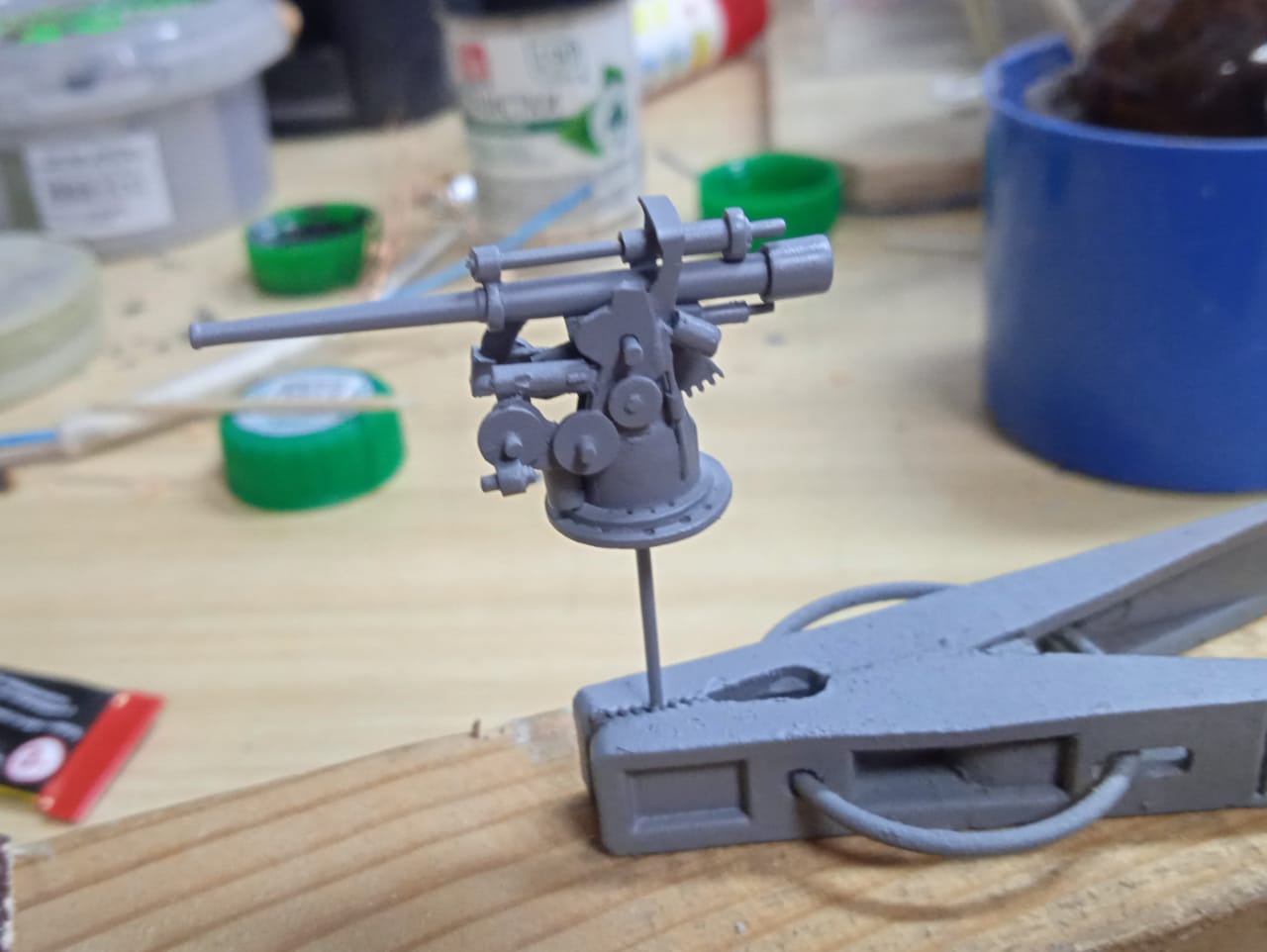Пока идет рабочая неделя и заняться моделью можно только по вечерам, решил сделать зенитное орудие на "Лепанто". Вот что получилось, осталось поставить маховички...