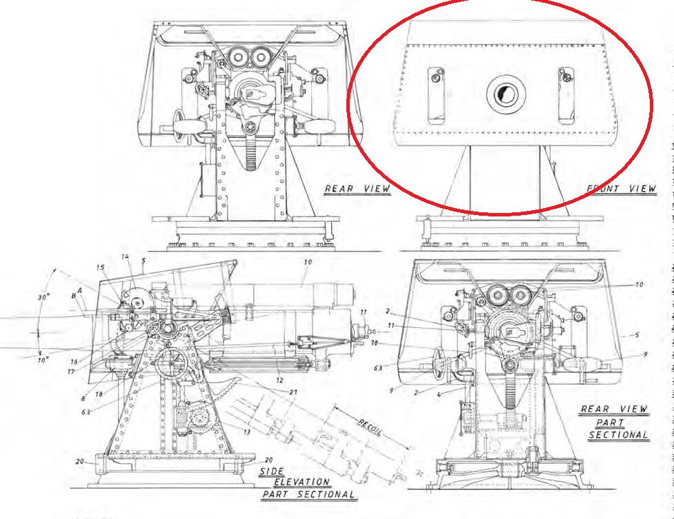 Мне кажется, что на орудийных щитах, должны быть отверстия для вертикальной наводки орудий. Сомневаюсь, что для вертикальной наводки ствола использовалось изменение угла наклона основания орудия. А каково мнение уважаемого сообщества?