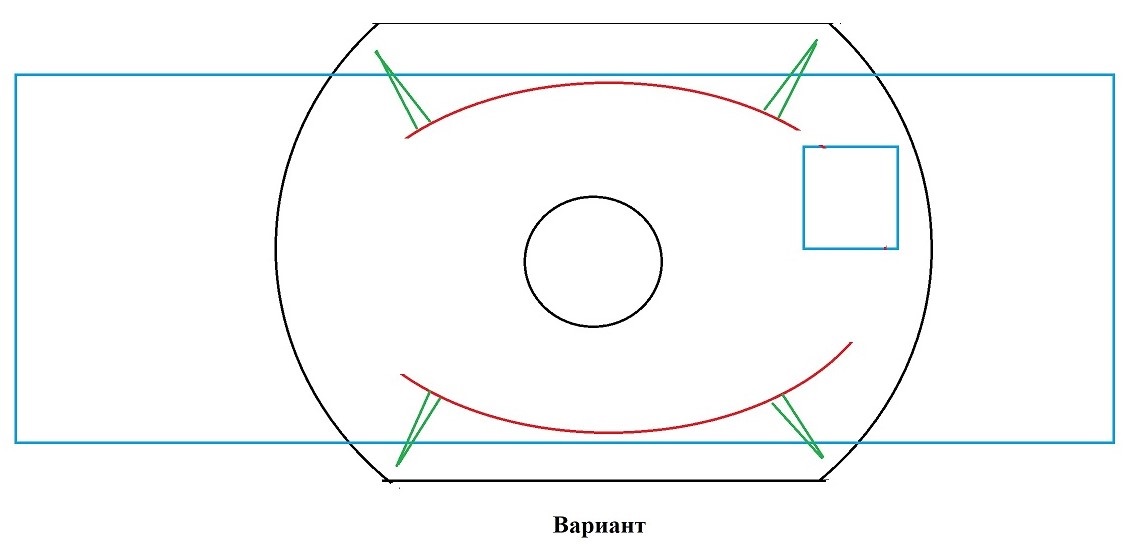 Паша, скорее всего, подкрепление не окружность(красный цвет), а дуги и они не выходят за пределы кожуха! А подкрепления (зелёный цвет) - это кницы удерживающие пулемётную площадку! Картинка не крепится почему-то, скину на Ватсап!