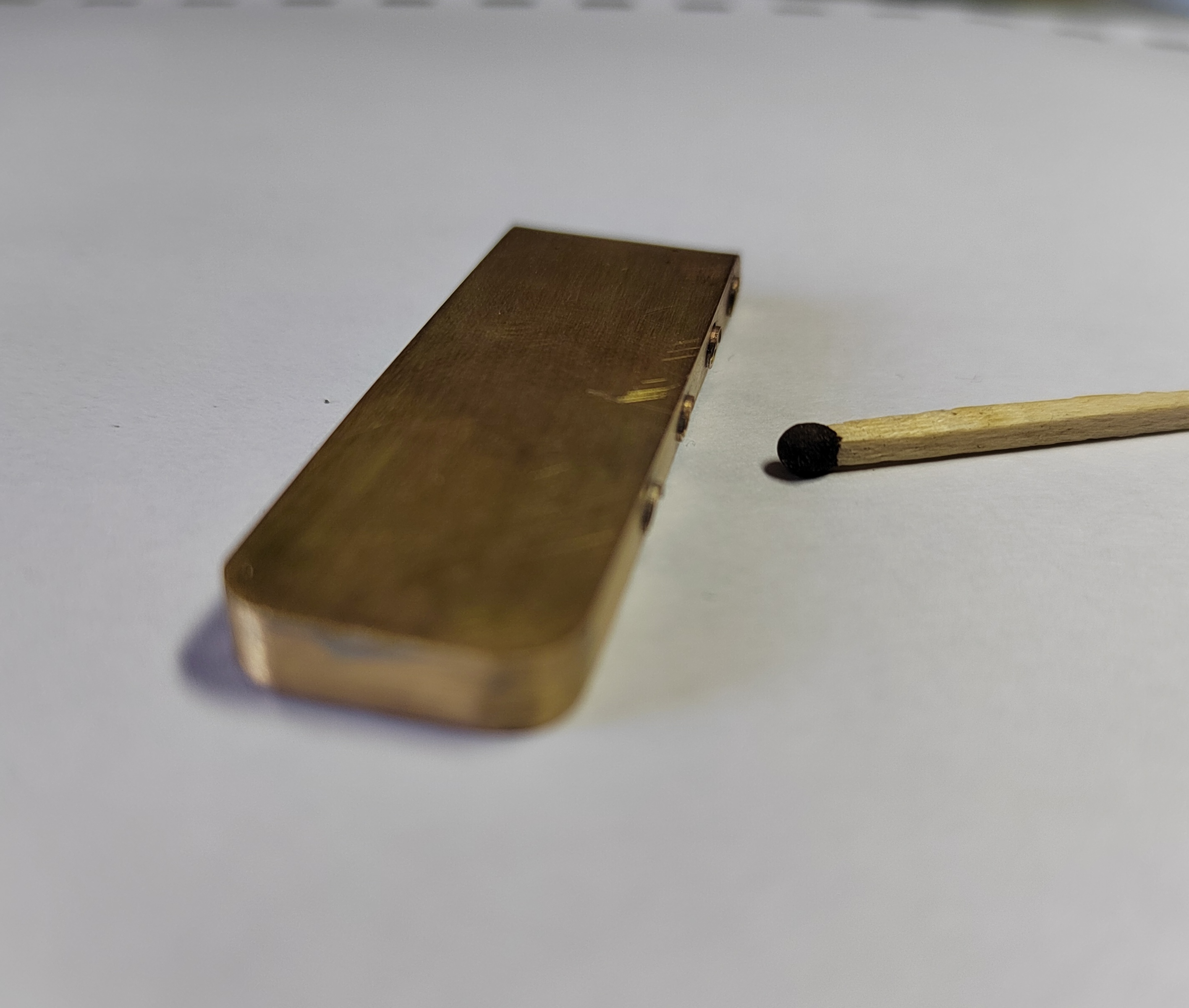 Листовую латунь на двусторонний скотч, заготовку по краям клеем прихватываю.