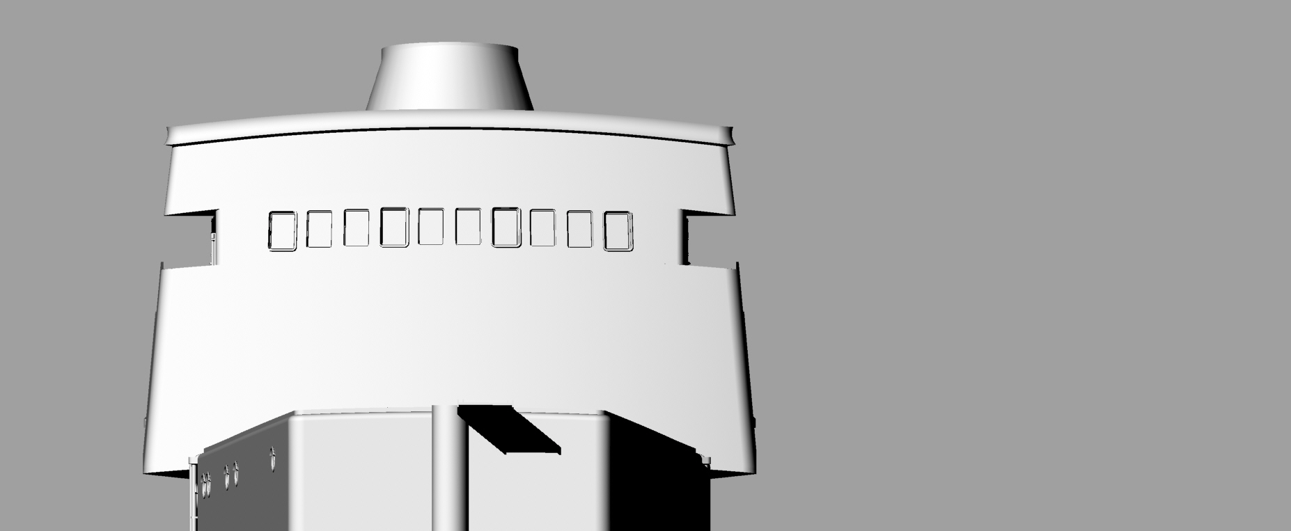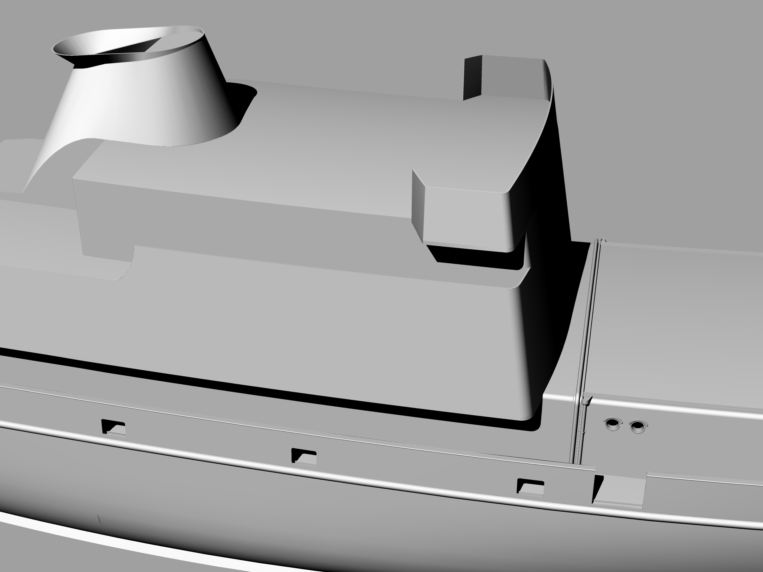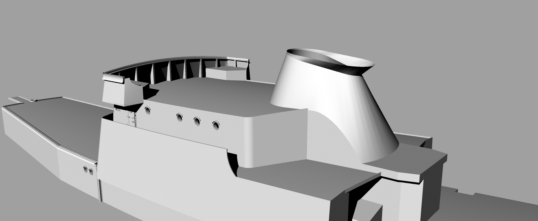 На сегодня расставлены все шпангоуты, сделаны вырезы под ватервейсы, идет насыщение деталировкой, чтобы при печати по секциям сразу оформлялись места под судовые устройства: