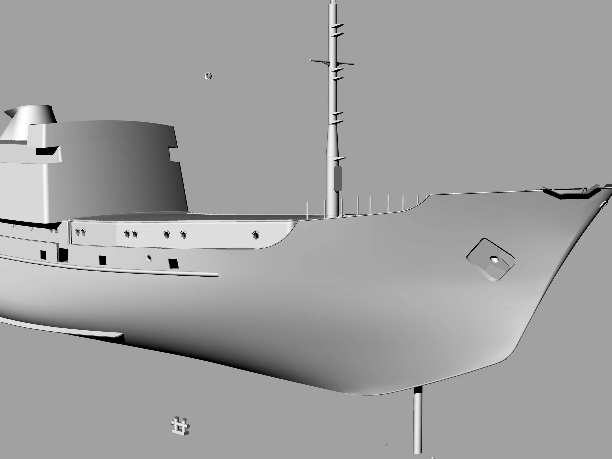 Итак, начал с ревизии теоретического чертежа, благо появились новые данные, которые позволили более достоверно позиционировать линию вала. Построил заново оболочку корпуса, прикинул надстройки. Моделирование идет параллельно по нескольким вариантам - основной - это "ССВ-506" на 1994-1998 г.г., второй - это "ССВ-506" до модернизации и появления "трамвая" на верхней палубе - можно сказать, исходный гидрограф с некоторыми своими "деталями", третий - это "Лиман" - просто в память о погибшем корабле его старпому - моему однокашнику...