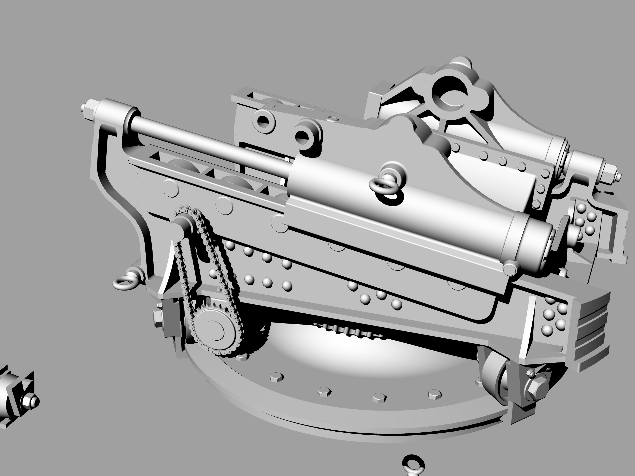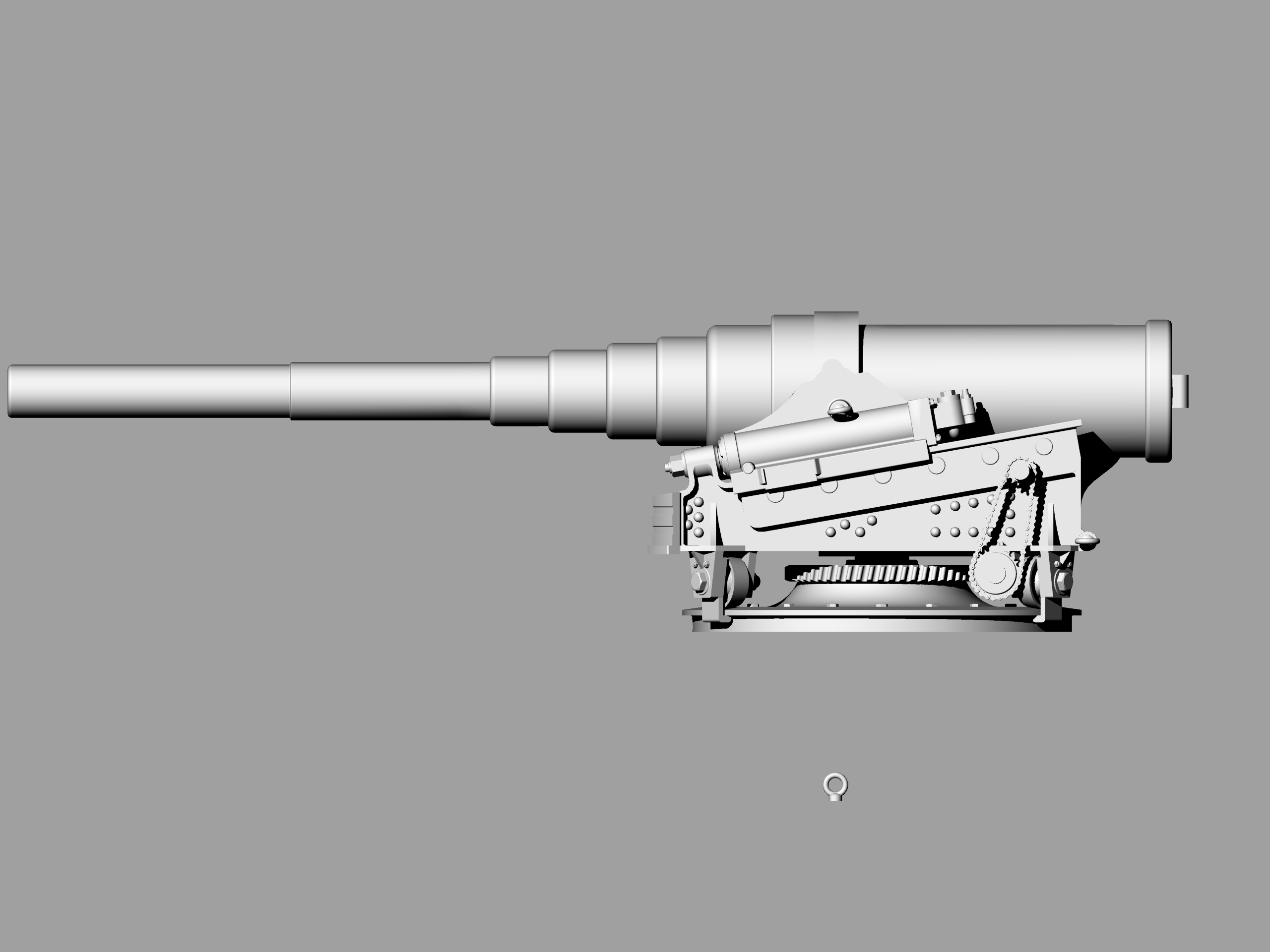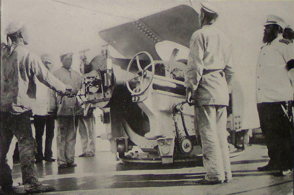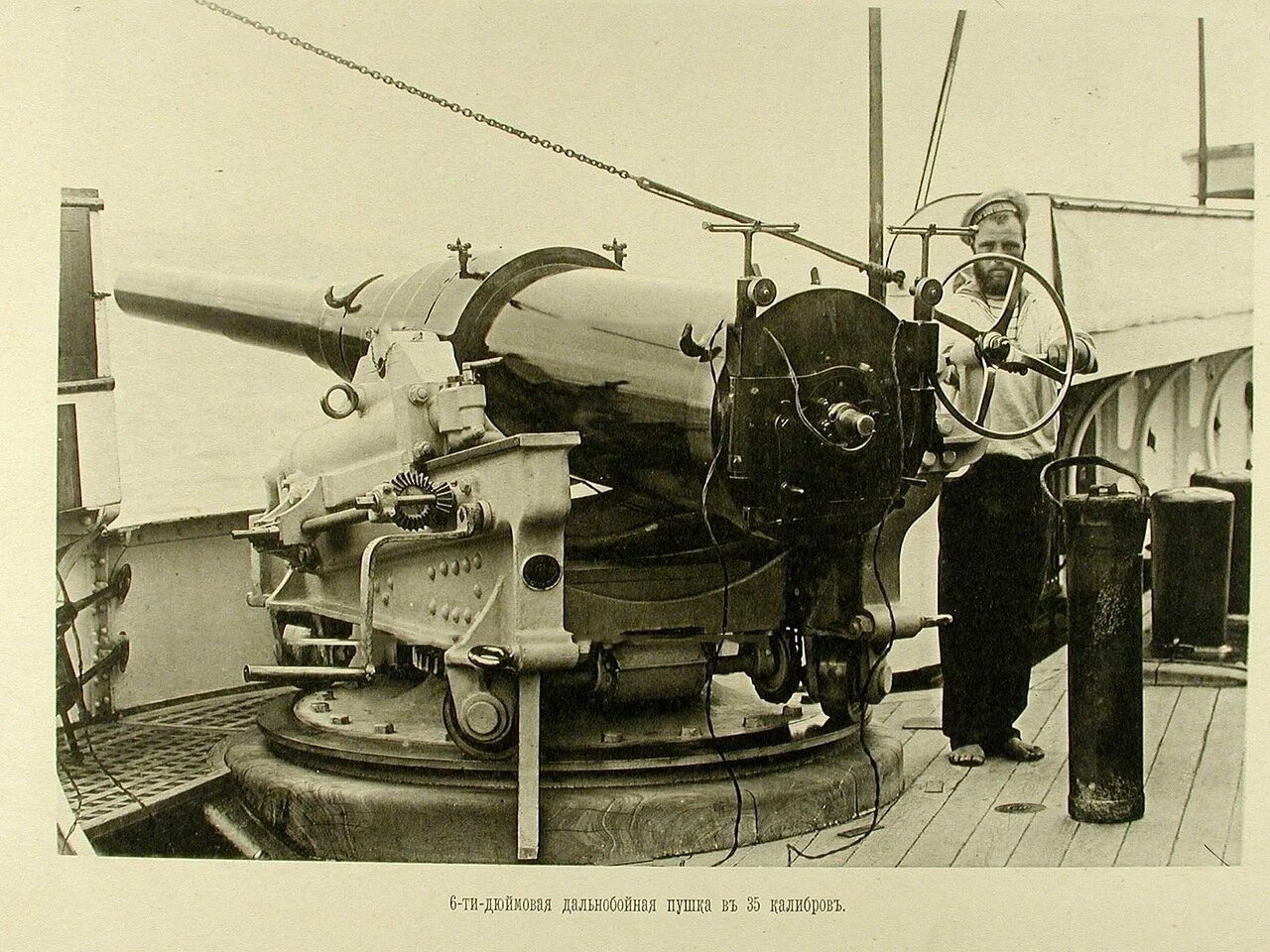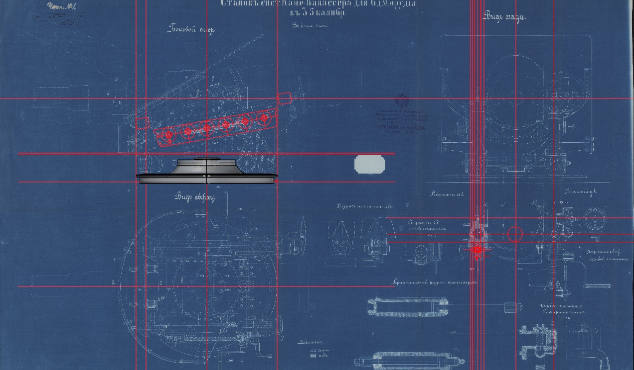 После общения с коллегами по увлечению, заказал в архиве несколько чертежей 6"/35 орудия на станке Канэ-Вавассера для крейсера "Адмирал Корнилов". Просмотрел полученное, но, видимо не очень внимательно. Два чертежа показались одинаковым и выбрал из них для работы более качественный. И начал отрабатывать детали. И вот когда дошел до цепного привода механизма ГН что-то ударило мне в голову посмотреть единственную имевшуюся у меня фотографию этой пушки...