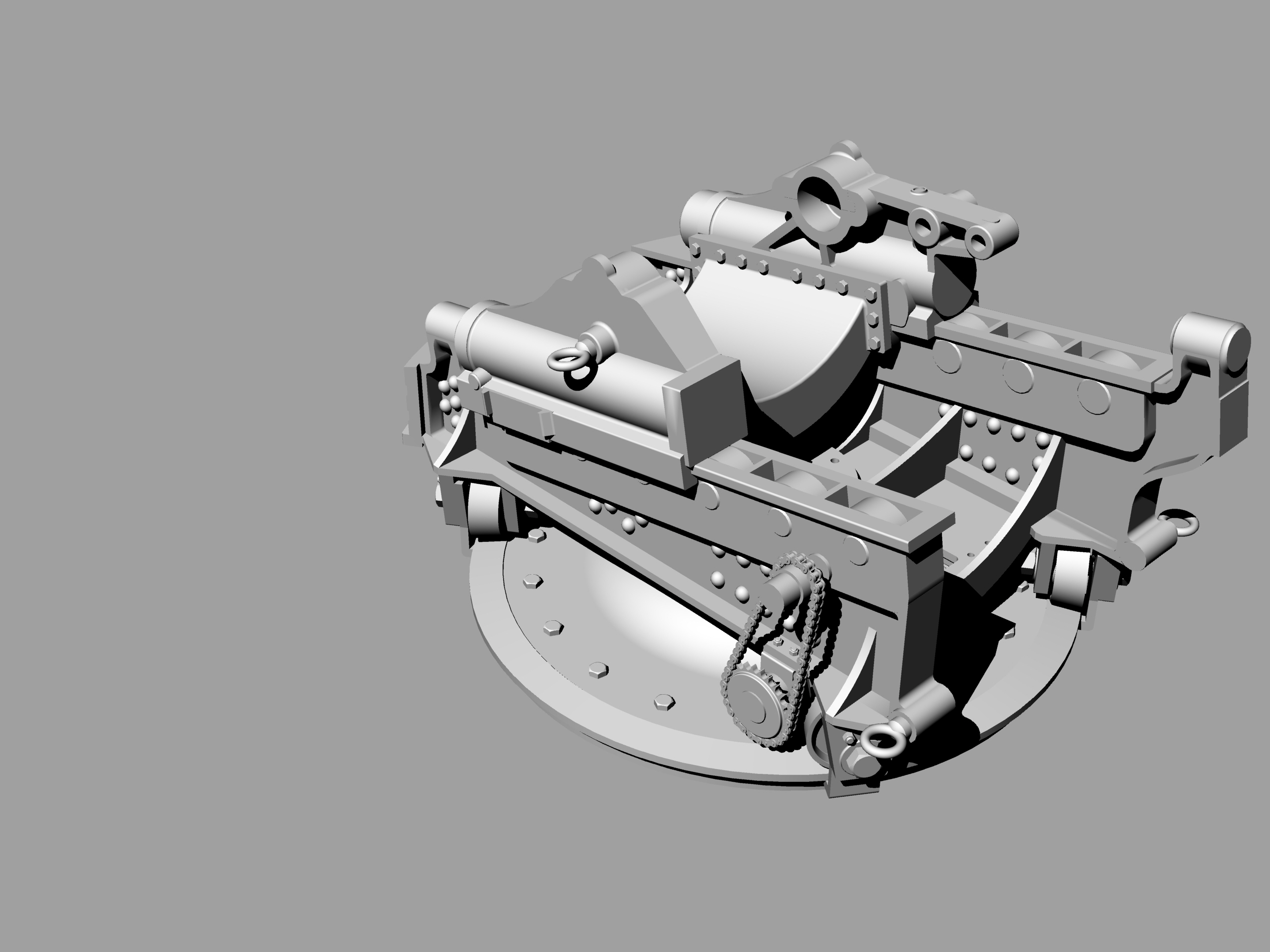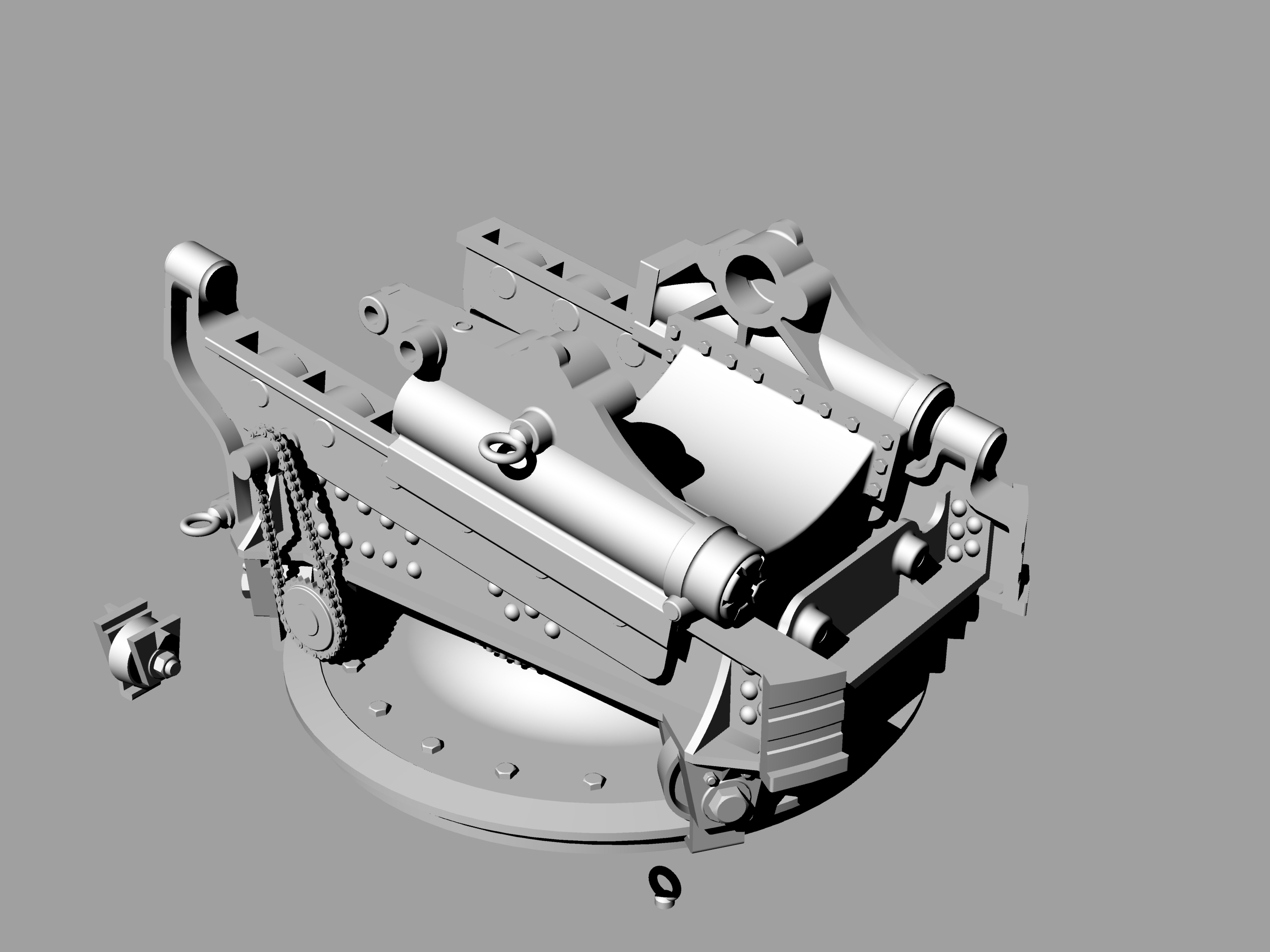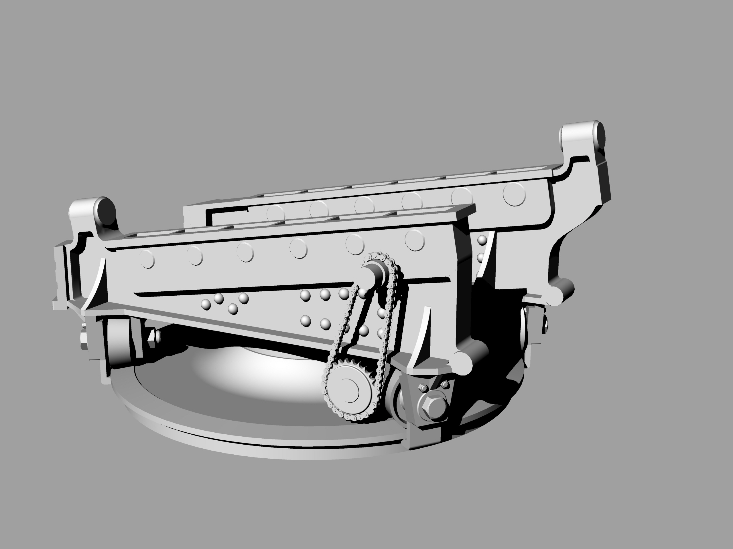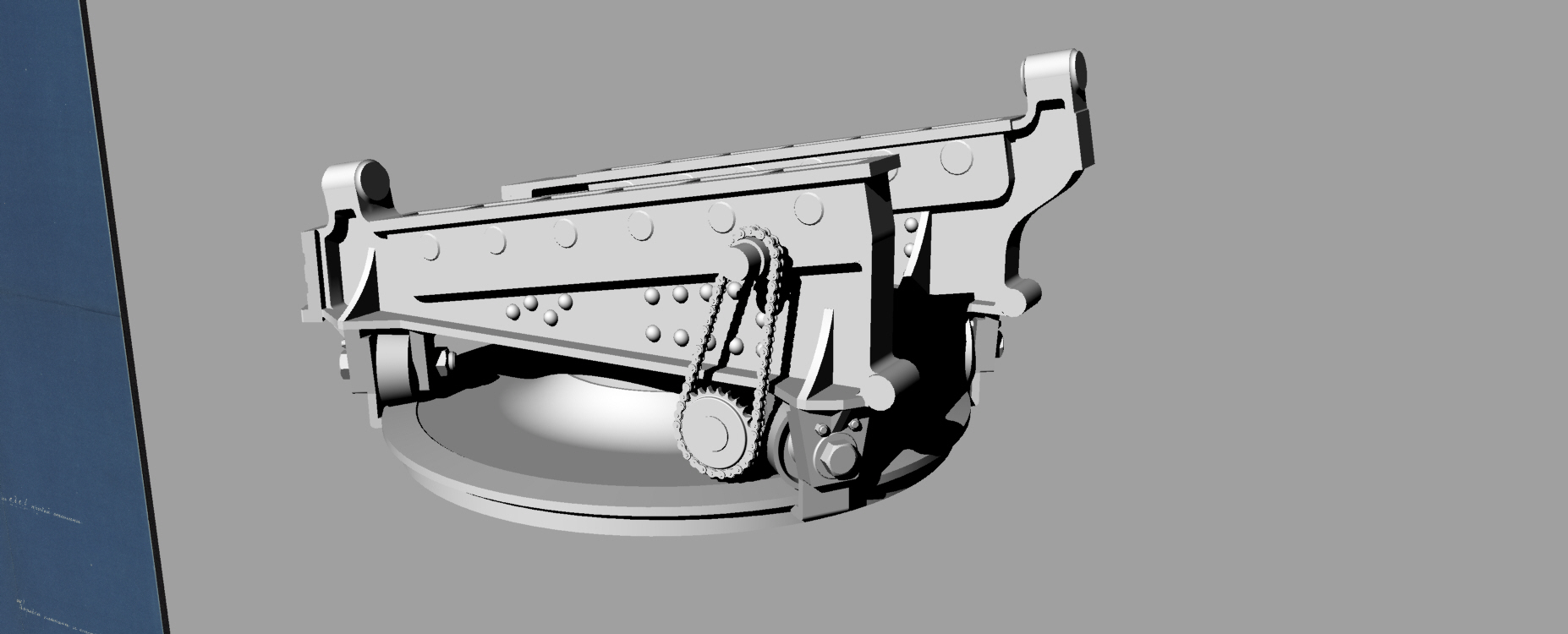 После общения с коллегами по увлечению, заказал в архиве несколько чертежей 6"/35 орудия на станке Канэ-Вавассера для крейсера "Адмирал Корнилов". Просмотрел полученное, но, видимо не очень внимательно. Два чертежа показались одинаковым и выбрал из них для работы более качественный. И начал отрабатывать детали. И вот когда дошел до цепного привода механизма ГН что-то ударило мне в голову посмотреть единственную имевшуюся у меня фотографию этой пушки...