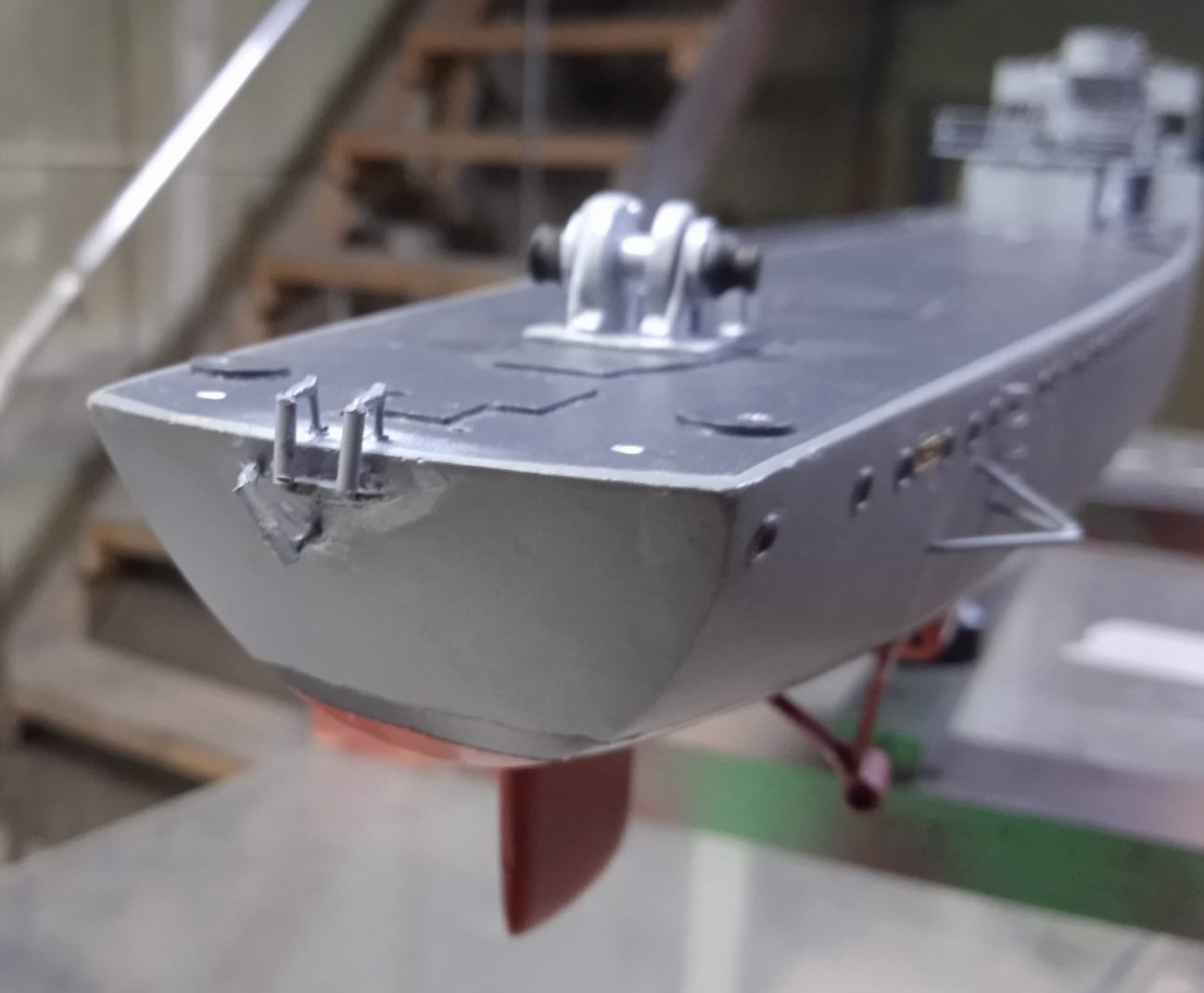 И начал "колдовать" с носовой надстройкой и мостиком: